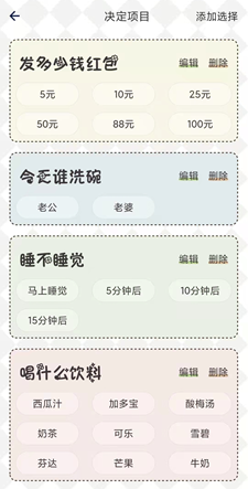 这款工具内置了不少抽奖模板,发多少红包、谁洗碗、送什么礼物、今天吃什么等等问题都能在找到。