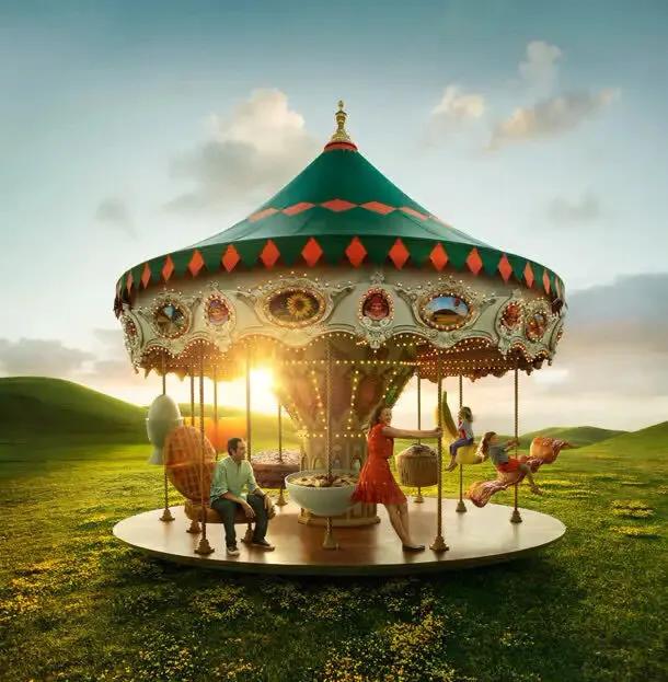 旋转木马它美丽,它看起来那么的美好,但每个人看到的只有它的美妙,却忽视了它的"残忍",就好像坐上去的两个人,明明离得很近,却永远无法触及,彼此追逐却有着永恒的距离。