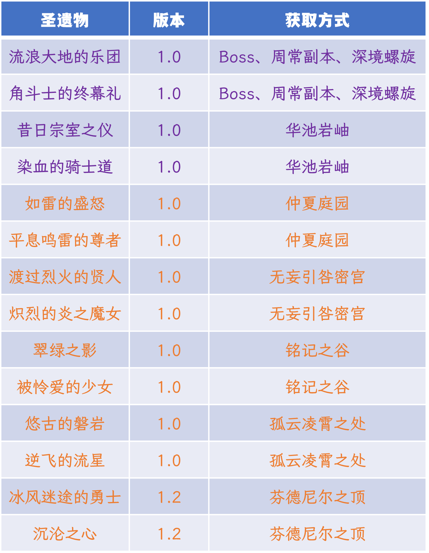紫色字体为2.8版本可合成的4种圣遗物套装