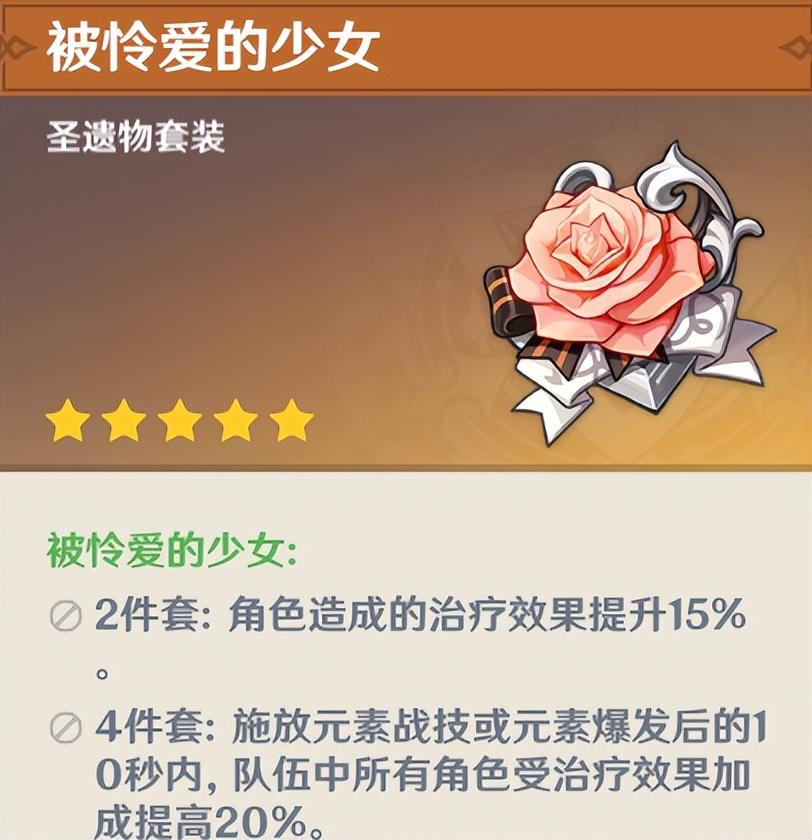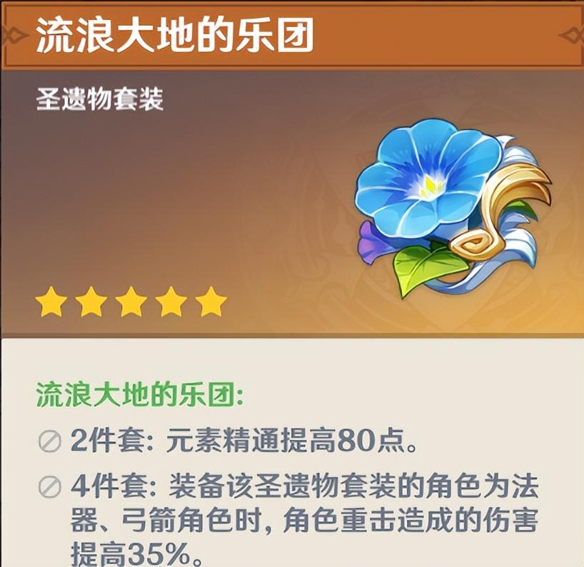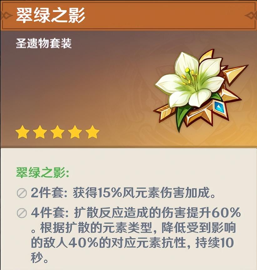 虽然是1.0版本就存在的圣遗物,地位却一直没变。风4的减抗效果适用于大多数情况,绝大多数风系角色的首选套装都是风套。但是副本中概率较高的少女套,以及精通主词条的感人掉率,不少人放弃了风本。这次更新的还圣奥迹可以单选风套进行合成,相信风套会是大多数人的第一选择
