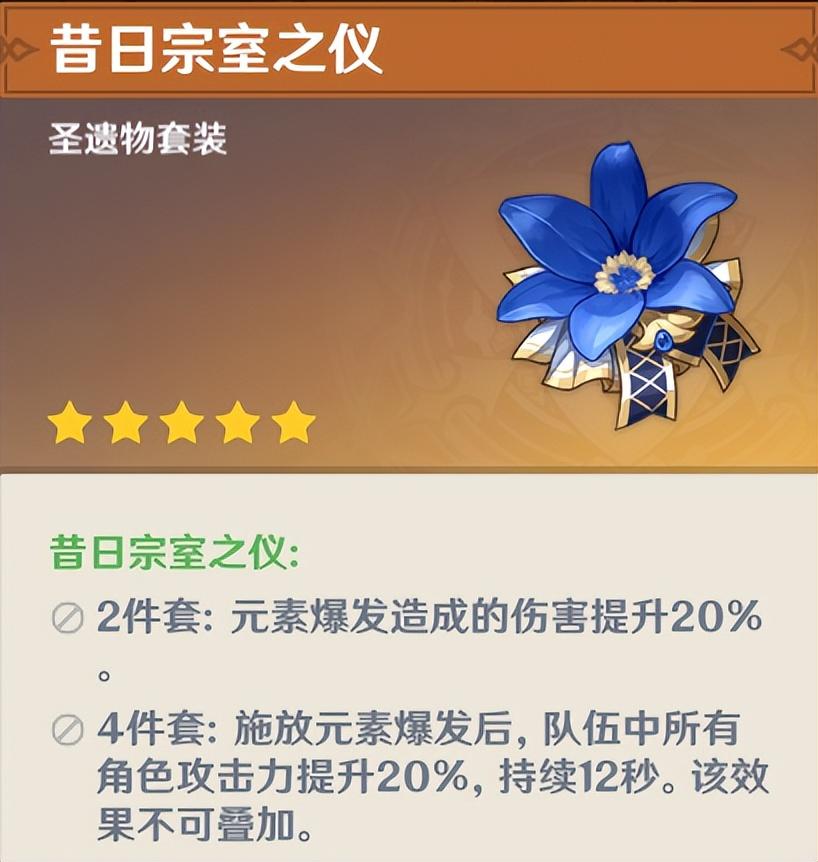 宗室套是泛用性最高的辅助套装,适用于绝大多数辅助角色。但由于其加入还圣奥迹时间较早,故将其推荐度降低。