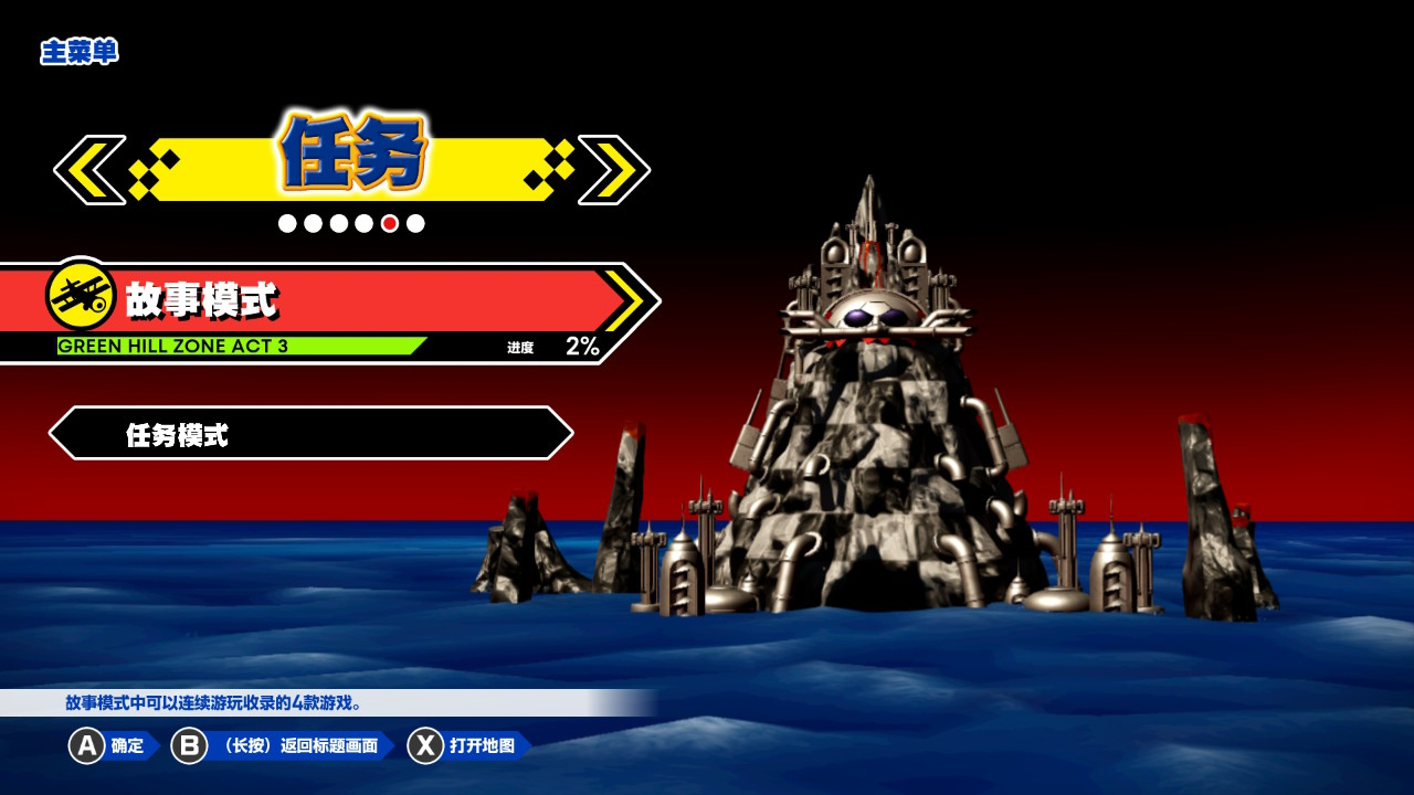 而在故事模式中,玩家将以四款作品的发布时间线为顺序,从最初的《刺猬索尼克》开始依次挑战历代作品,且流程进度将会在菜单界面显示。