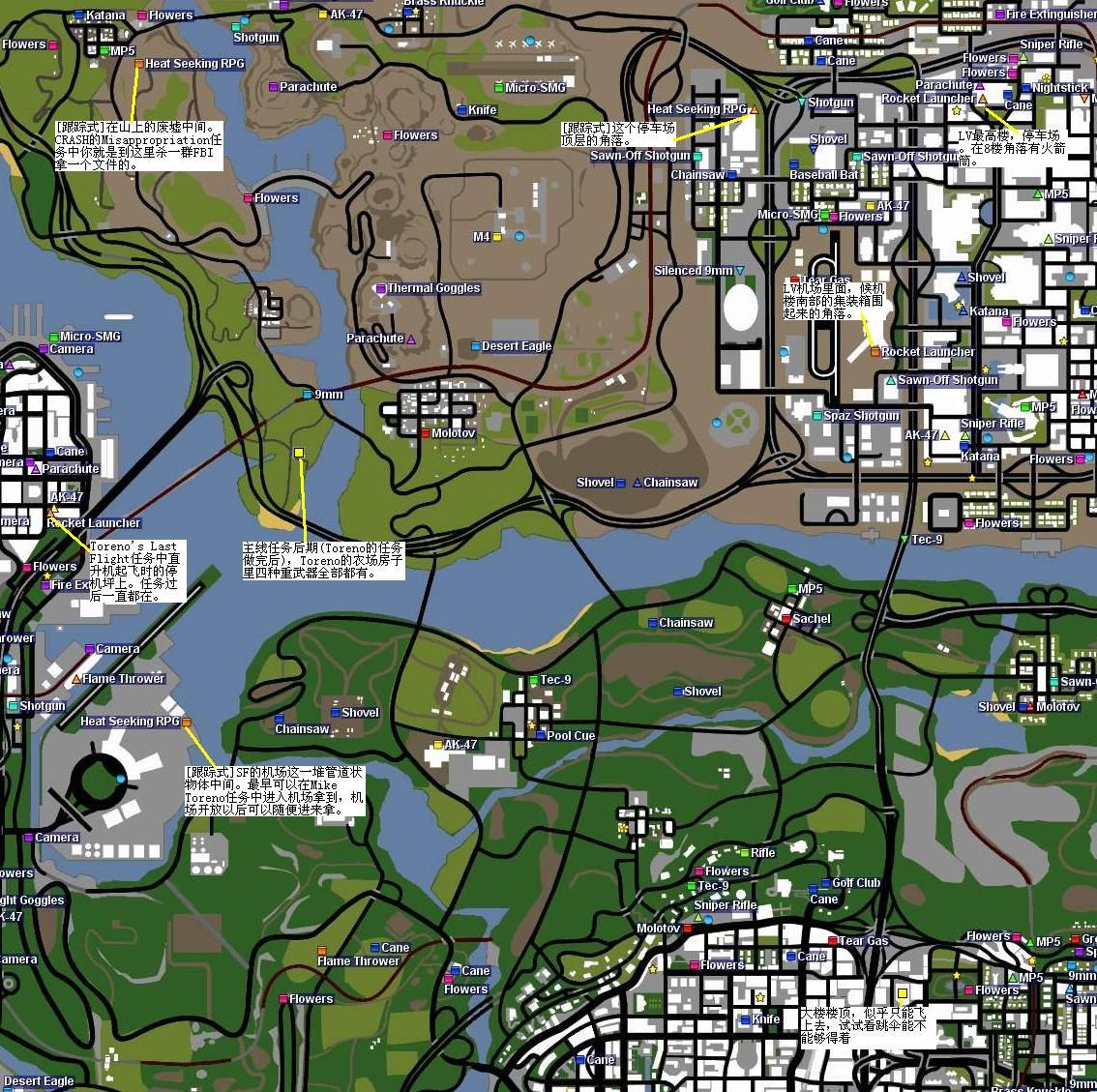 圣安地列斯武器分布图(圣安地列斯武器都在那)