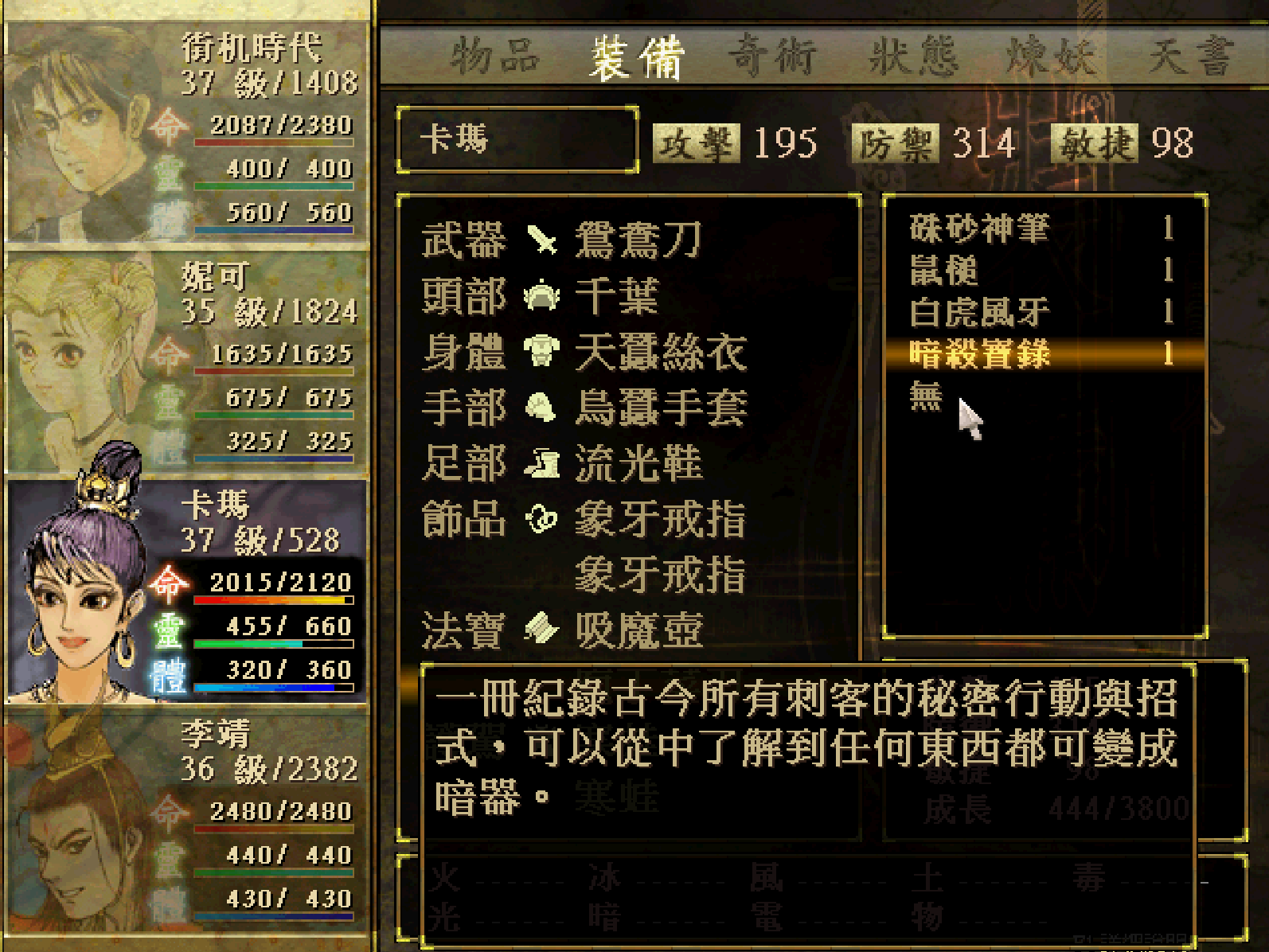 “暗杀宝录”在《轩辕剑》系列中的地位还是比较高的,废弃的武器可以通过这个法宝成为暗器。
