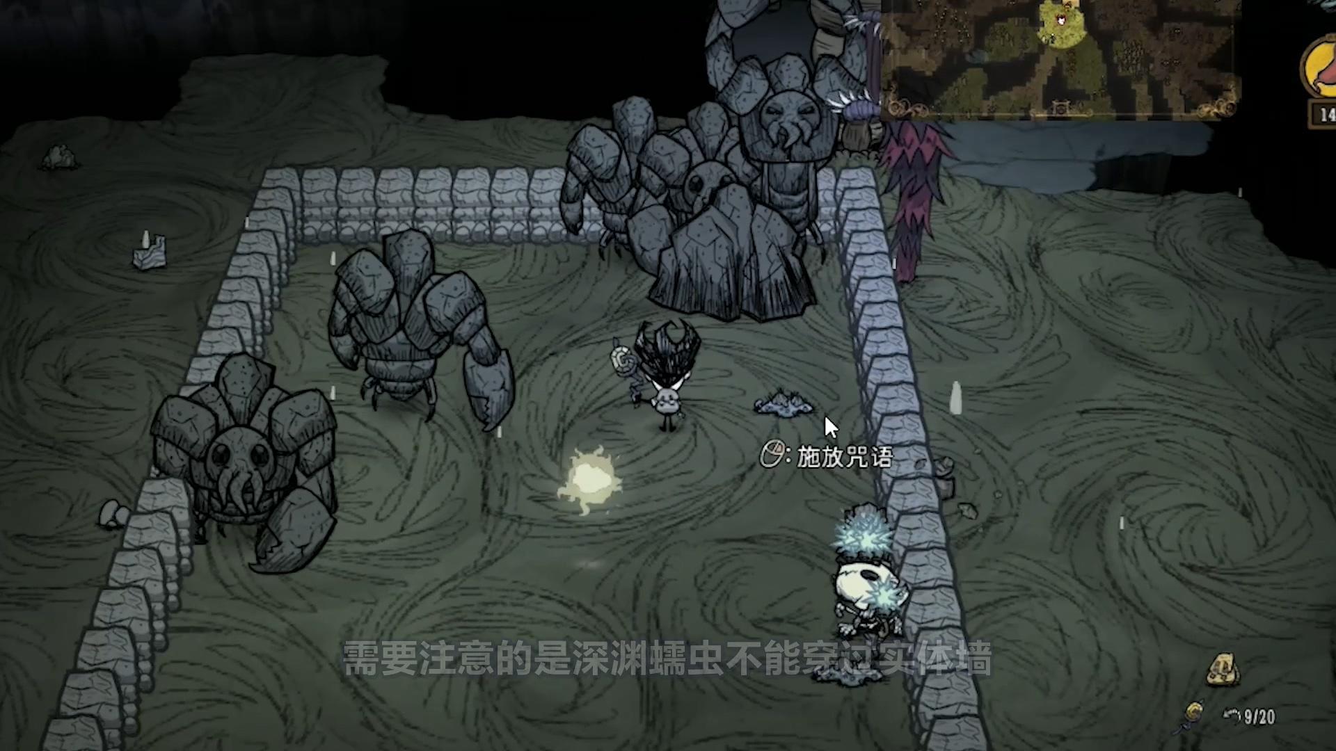需要注意的是深渊蠕虫不能穿过实体墙,所以当围栏没有缺口的时候,它们是进不来的。