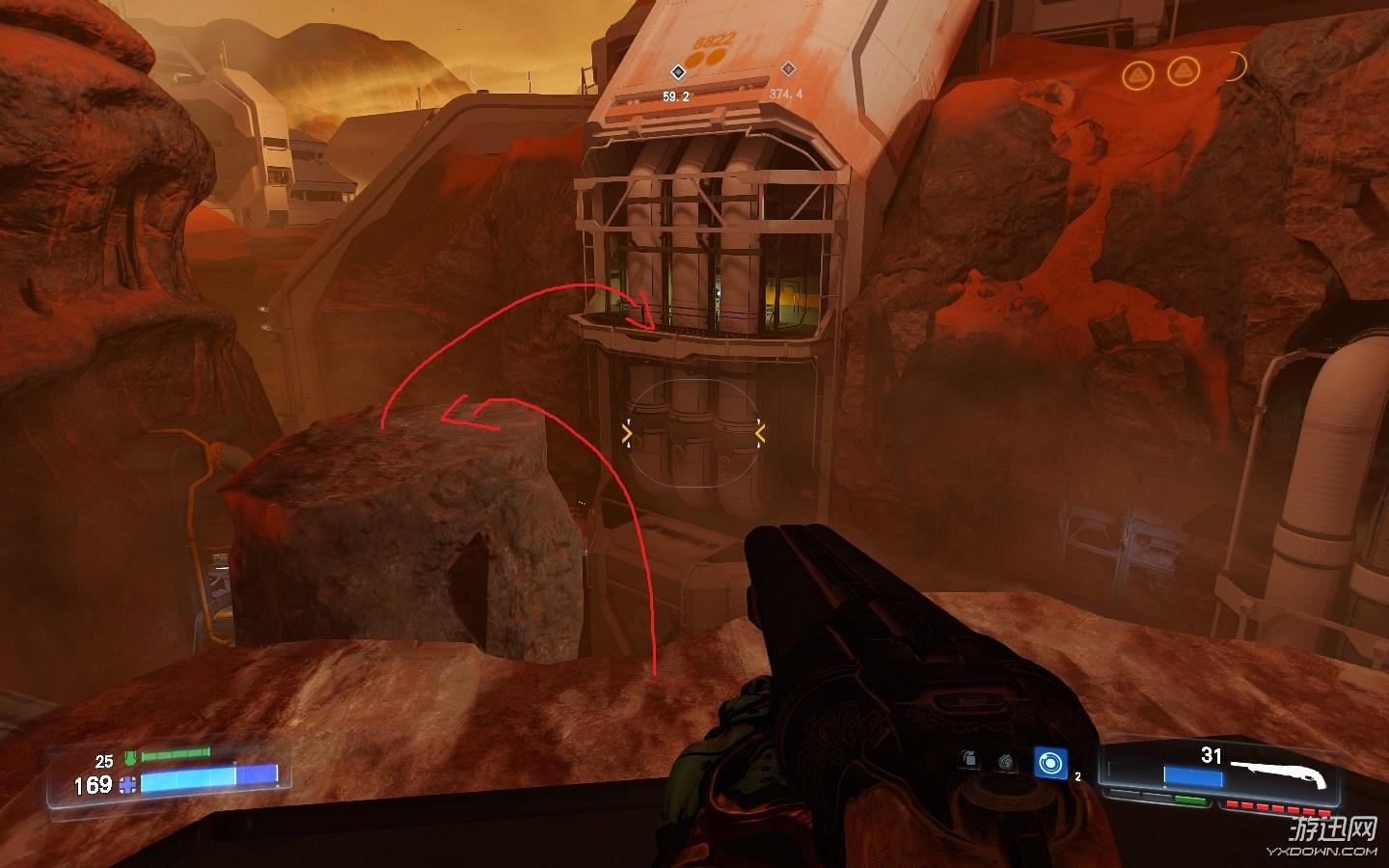 跳到平台上,拉完拉杆,下面就是隐藏点