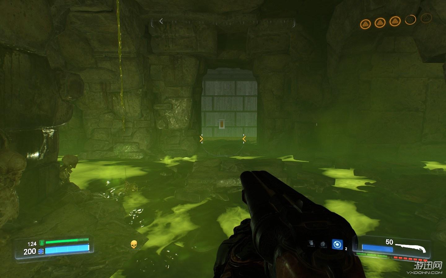跟着剧情走,来到可以拿黄色骷髅的地方,清掉几波怪,地图上几面墙会打开,如图就能发现拉杆
