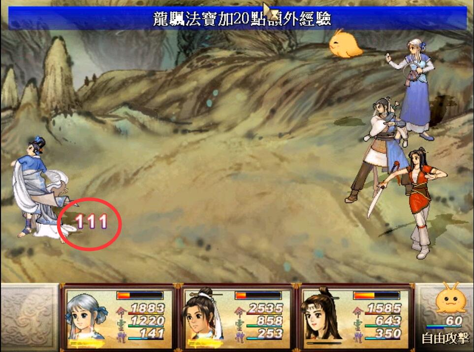 伤害:111、222、333、444、555、666、888、999,得到法宝经验20点;