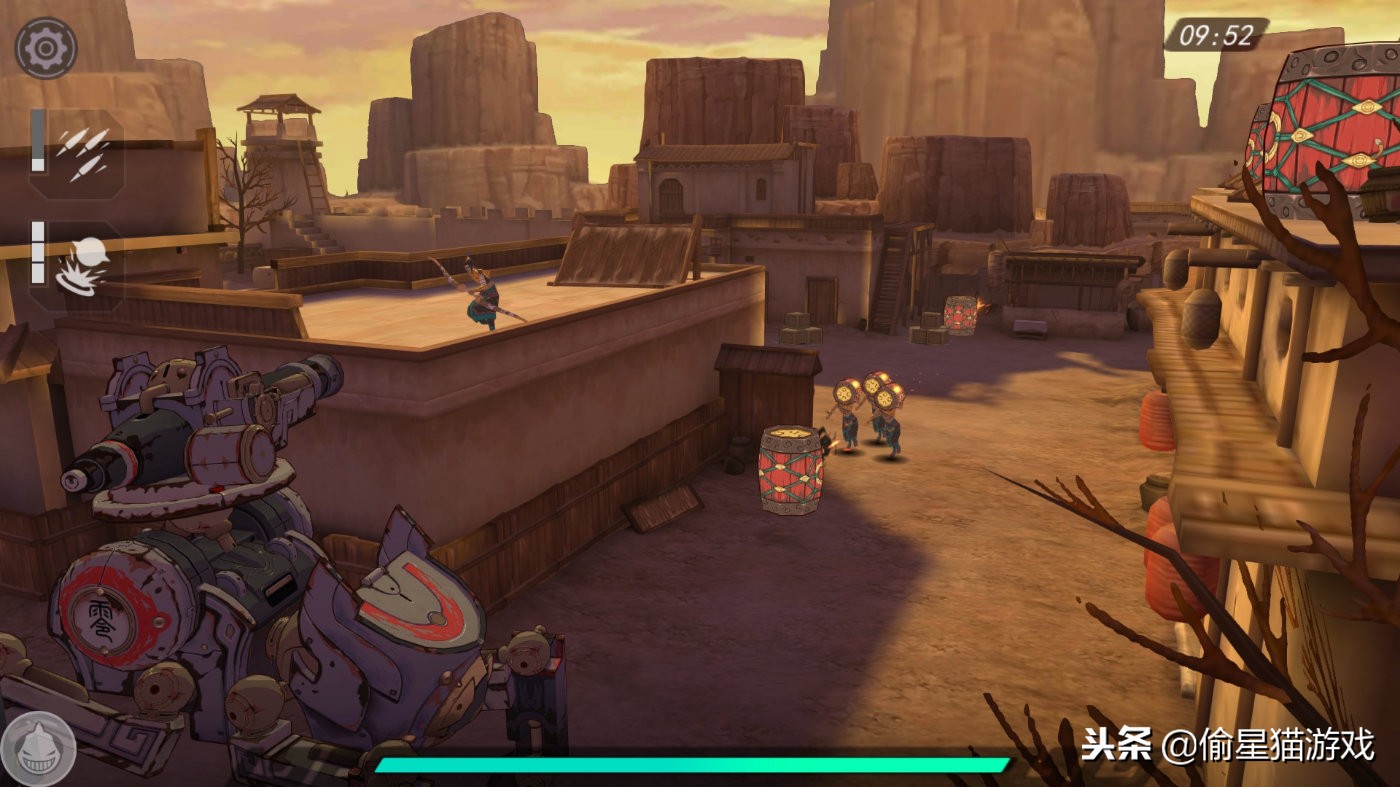 游戏开始以一段古代的攻城战将我们带入这个世界,城将破之际,你的视角跟着一位披着挂甲的士兵冲上战场,来到一个庞然大物的躯干之下——wait……?高达……哦不机关术神兵,在对方黑皮宣陀人的强攻之下重伤。