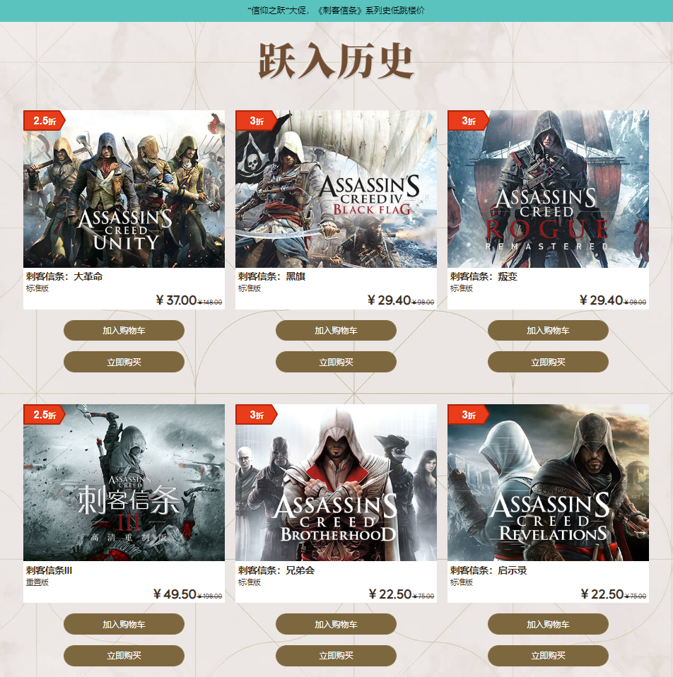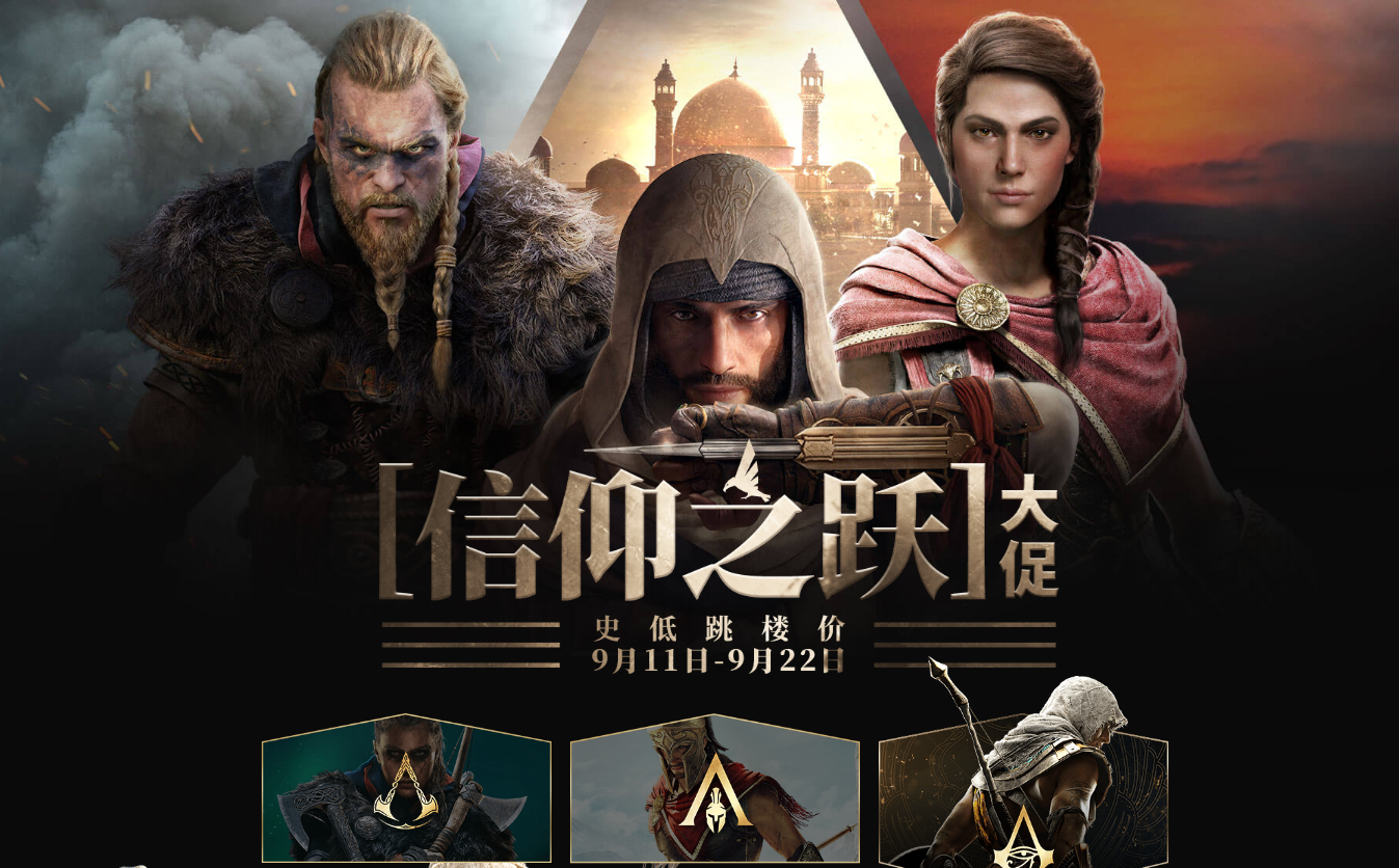 近日《刺客信条》系列新作的好消息不断,育碧也在自家的官方商城开启了“信仰之跃”大促活动,《刺客信条》系列史低跳楼价,优惠截至到9月22日。此外,系列新作《刺客信条:幻景》现已开启预购。