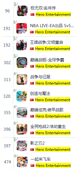 英雄互娱是 App Store 畅销榜拥有游戏最多的公司之一