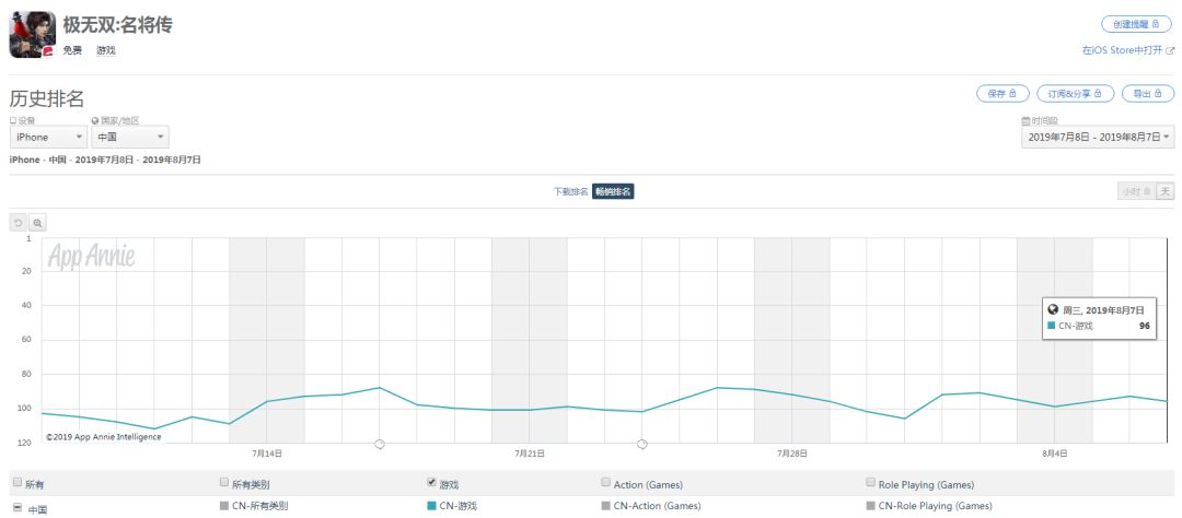 《极无双:名将传》是北京钛核互动研发的三国题材手游。8 月 7 日该游戏排在 App Store 畅销榜第 96 名的位置。