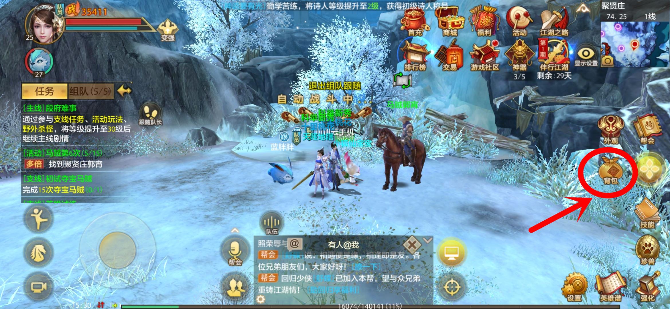 1、玩家首先点开游戏界面的“背包”按钮。