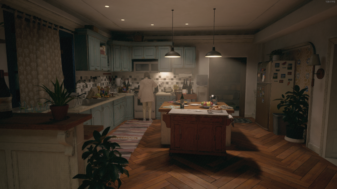 光线追踪选项的子项挡位一般在多数光追游戏中区别并不明显,《生化危机8》也不例外,唯一细微区别在于光线打到木桌上所呈现的细节,中等和高选项下拥有比低选项更多一些的细节。