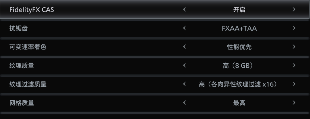 由于抗锯齿选项并没有传统的关再到其他高阶选项的递进,所以从肉眼观察看不出区别。