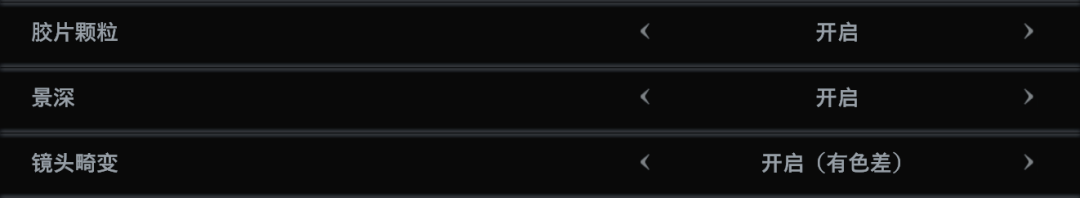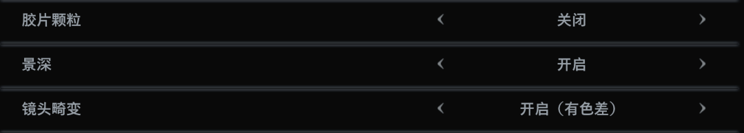 改变镜头画面的表现力,个人更喜欢开(有色差)选项,画面有种打了肾上腺素的感觉,配合恐怖元素玩起来更带感。