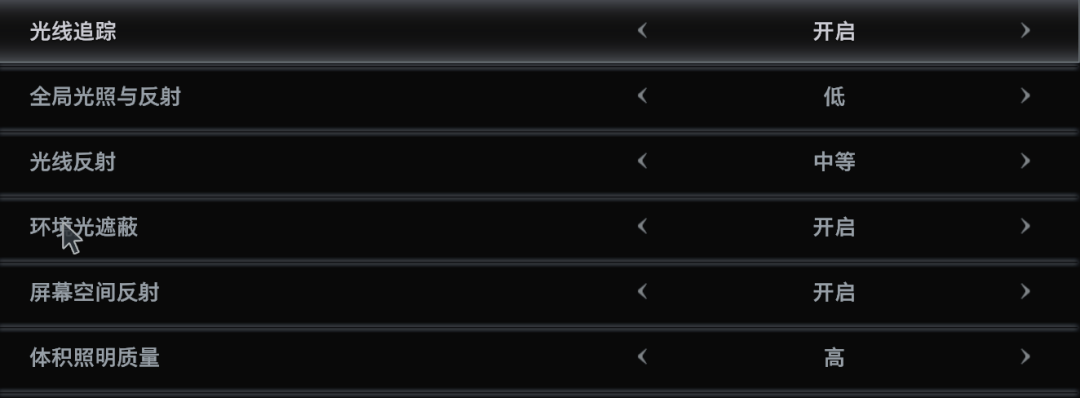 由于光线追踪的全局光照与反射和光线反射两个子项在不同档位下画面区别并不明显,所以考虑关闭换取帧数,其次调节了一些对画面影响较小的选项来向高帧率推动,优化后平均帧提升了24帧。按照如上设置后如果爆显存也不用慌(除非你是8G内存),系统会调用虚拟内存来弥补缺失。
