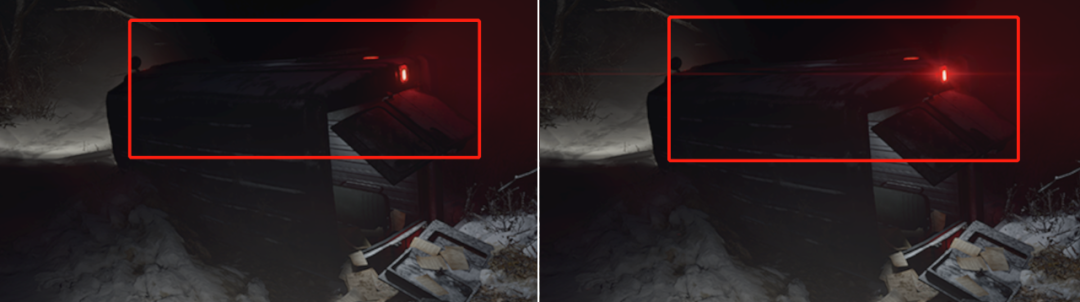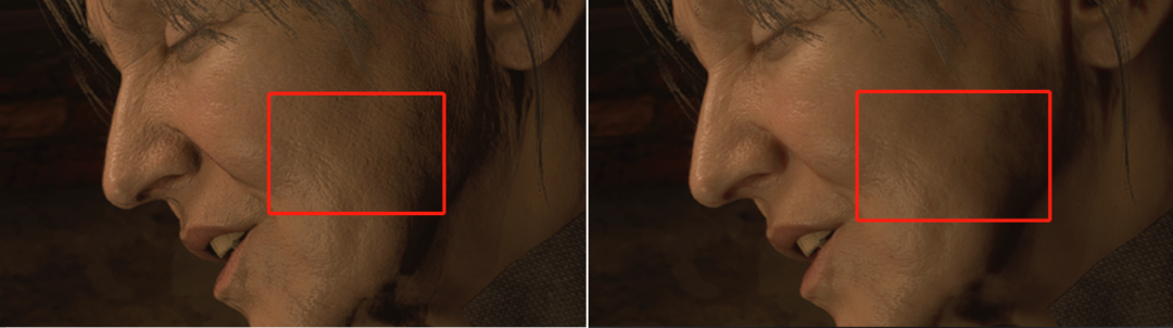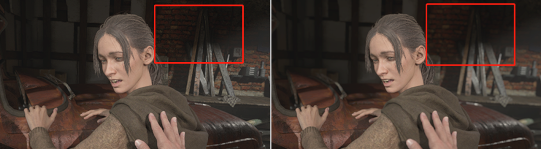 上图分辨率为4K,所以对比效果不明显,但还是能够看出在婴儿车的边缘处存在细微的锯齿差距表现。可变速率着色,在低分辨率的画面区分会更为明显一些。