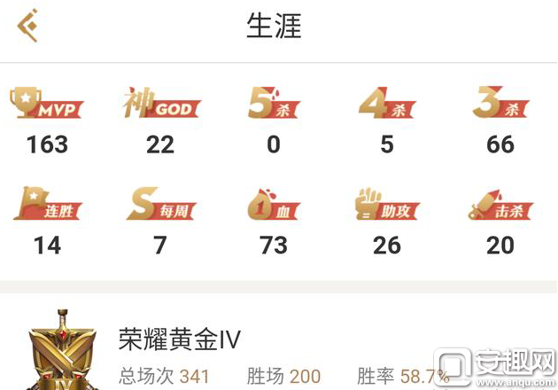 点击上方还可以进入生涯,里面记录了你所有比赛积累的荣誉(连胜、最多助攻或击杀等)