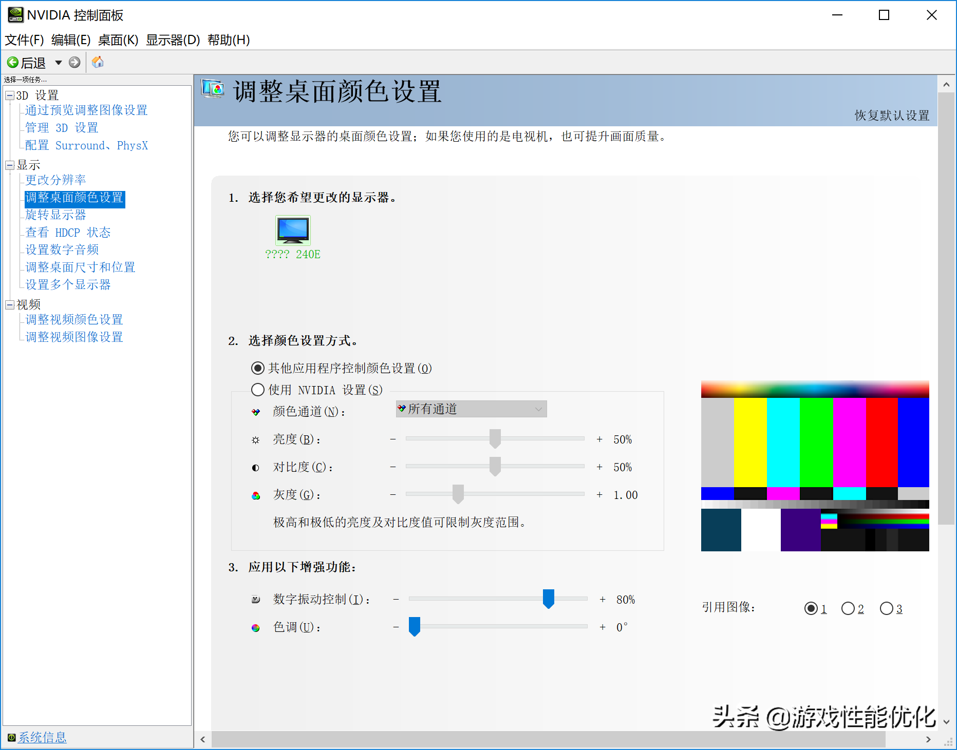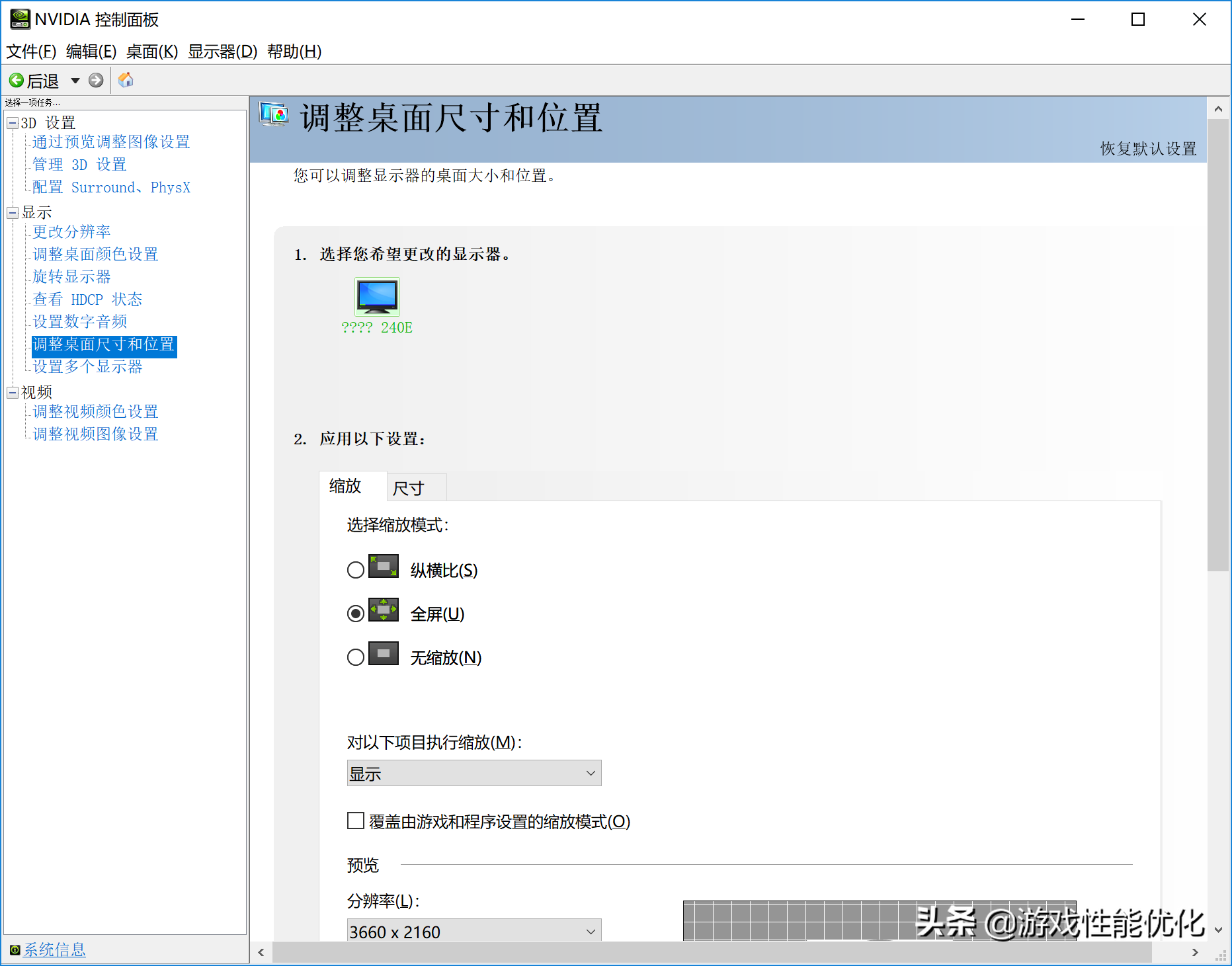 ▸点击通过预览调整图像设置,勾选使用高级3D设置。
