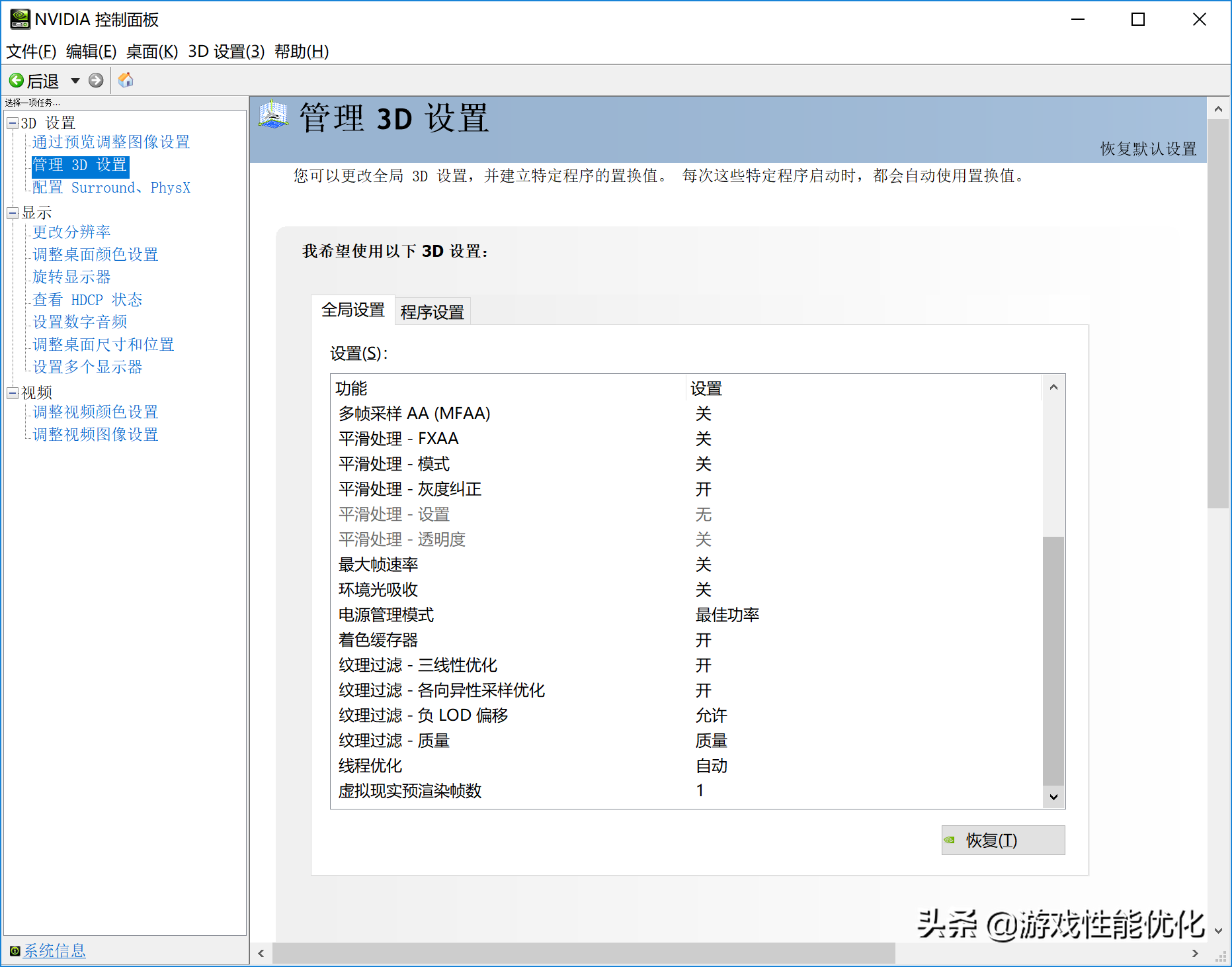 『 管理3D设置 』