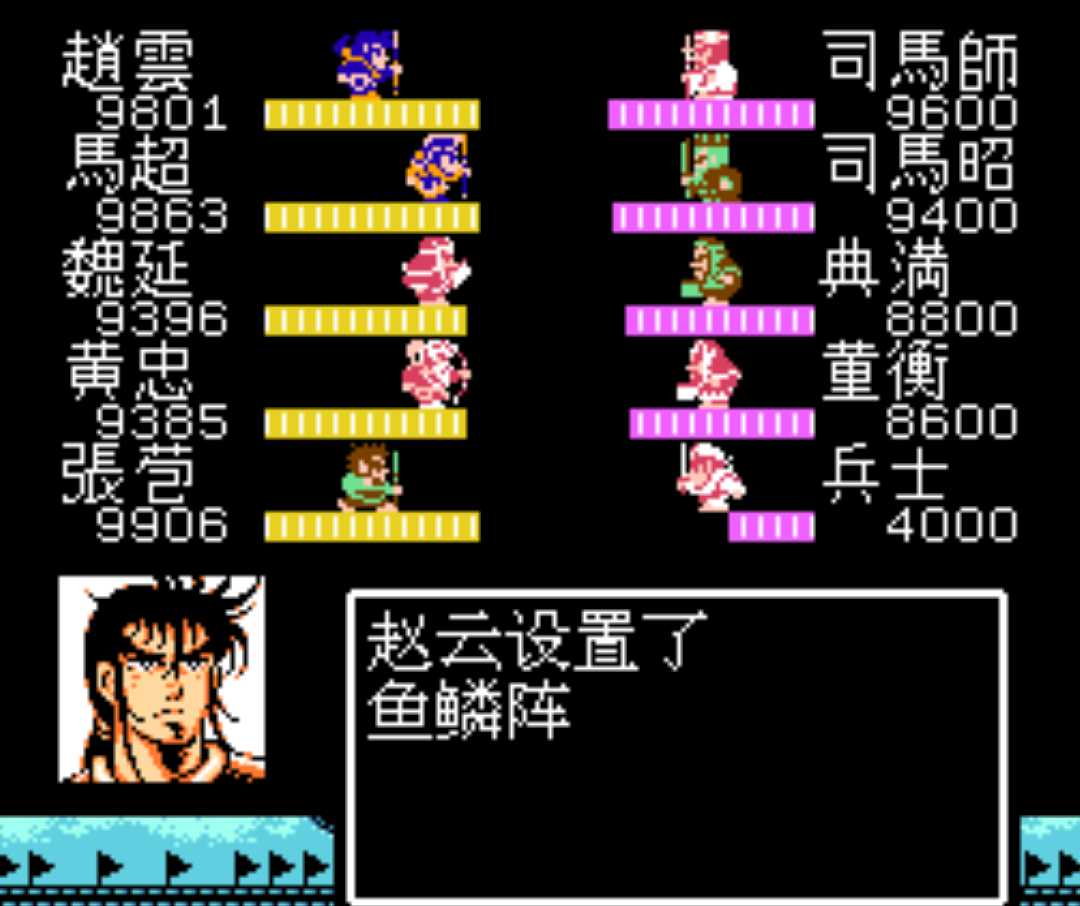 总的来说,鱼鳞阵的防御属性比不过箭锋阵(一、五位被击x0.05),攻击属性不如一字阵(全体攻击x1.5还加敏捷),策略减免的属性在前中期发挥空间并不大,至于游戏后期嘛……我想应该不会有朋友执着到在对阵司马懿时用鱼鳞阵吧,八卦阵不香么?
