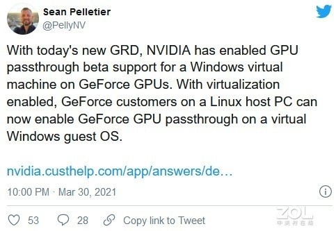 虚拟机是非常重要的软件,但如果你手上没有性能强大的主机,那么体验并不好,特别是显卡方面。如今,英伟达将在GeForce显卡上开启GPU虚拟机直通功能,让消费显卡也可以直通虚拟机,从而带来更好的图形性能。