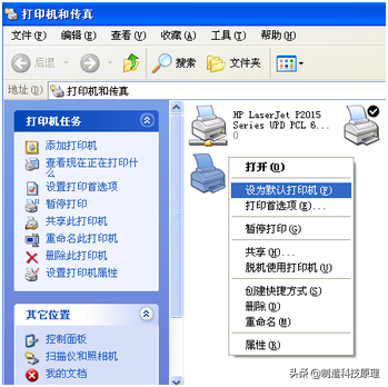 我们可以右键该打印机,可以将其设置为默认打印机,我们在该打印机上面右键,设置为默认打印机即可,如图所示: