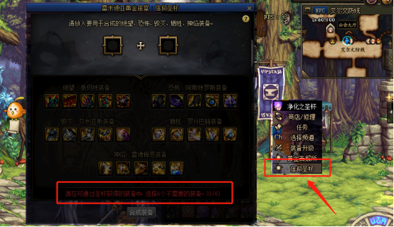 另外,有重复的奥兹玛装备或者不是自己喜欢的套装的话,还可以在净化之圣杯处点击信仰圣杯,然后放入两件奥兹玛装备,可以随机合成一件奥兹玛装备,每次点击合成可以选择6个不需要的装备,合成之后会2变1,如果是自己想要的那一件(概率你懂得),直接获取不再继续合成,如果不是可以再放入一件奥兹玛装备,继续合成,又可以选择6个不需要的装备,总结一句话,只要奥兹玛装备够多,肯定可以和出自己想要的那一件。