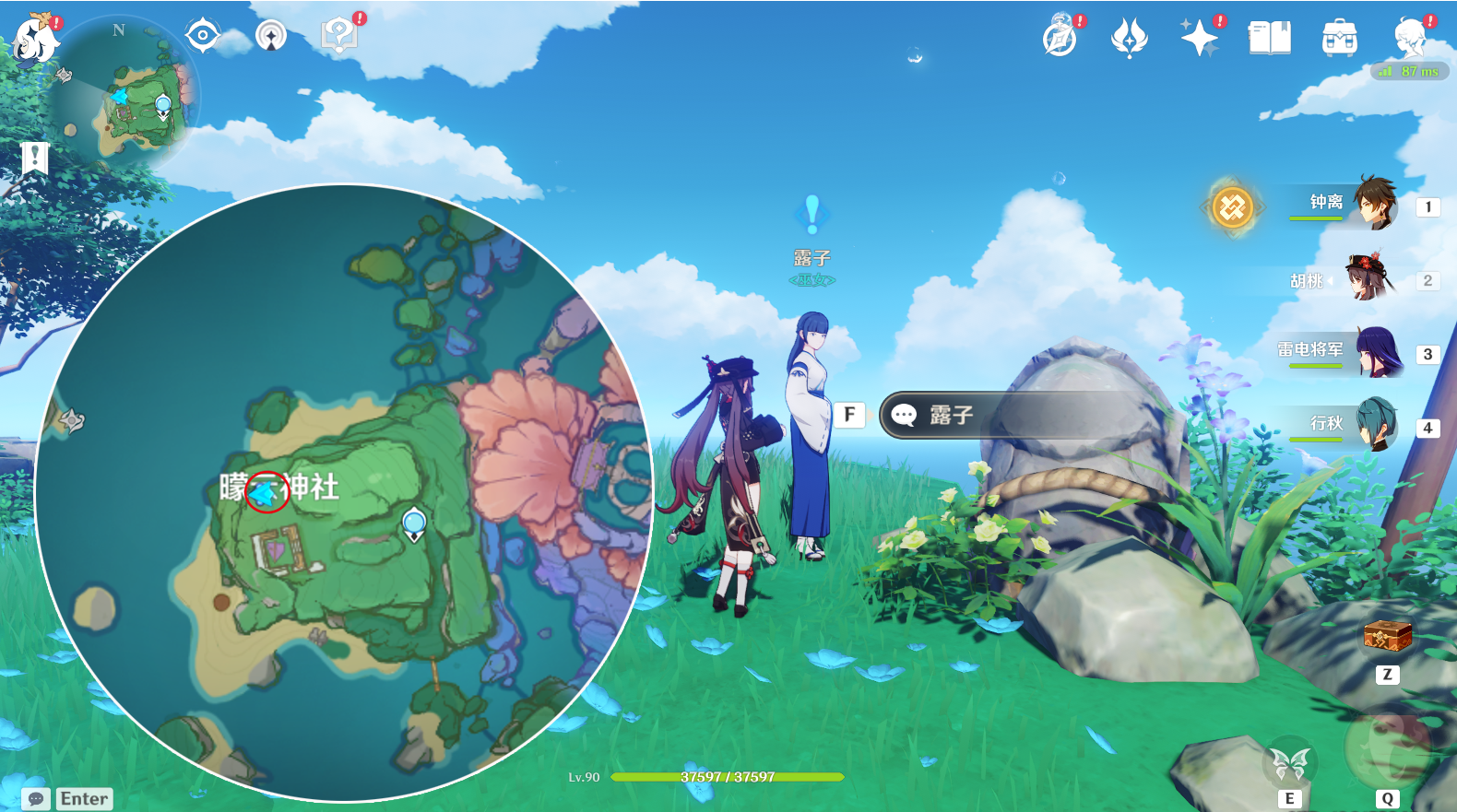 该任务触发地点::在海祗岛地区,朦云神社旁边,与露子对话,漫长的对话开始,