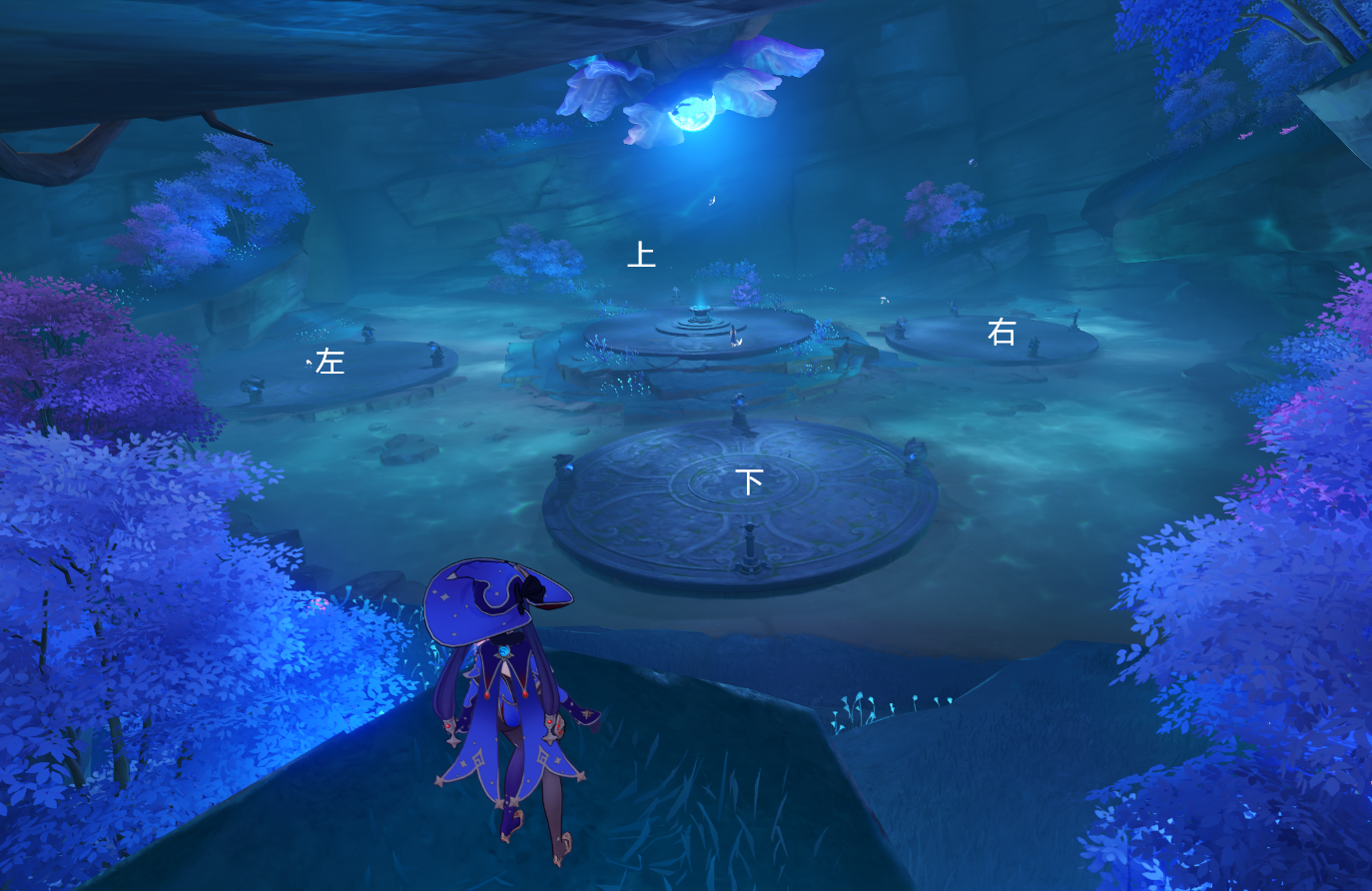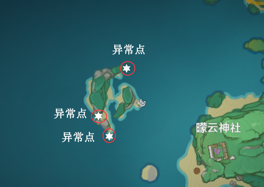 (2)解除神龛的封印,用元素视野找异常点,有三处,找到后用冰元素或风元素攻击即可完成,如图: