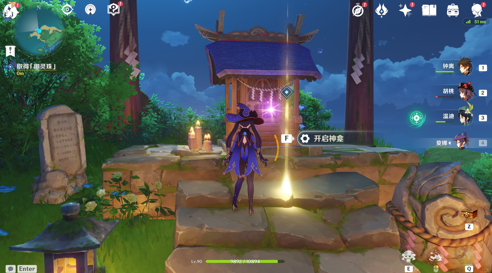 (3)上去神龛旁边取得「御灵珠」,任务完成获得奖励,
