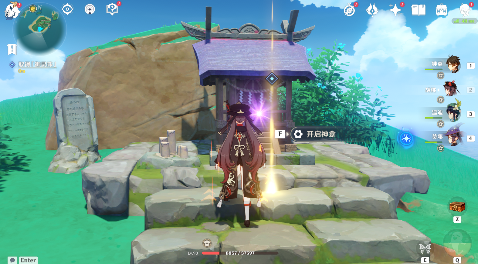 (3)击退唐突登场的愚人众,击败后然后再去取得「御灵珠」,任务完成获得奖励,