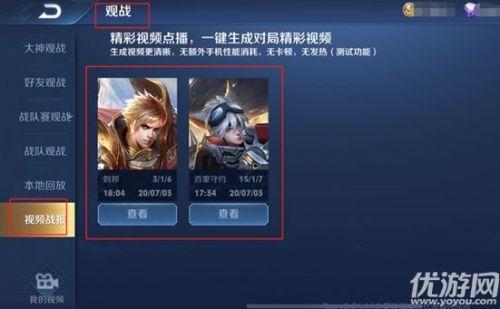 生成视频战报以后,可以在两个地方查看,一个就是历史战绩界面,如果该对局有生成过视频战报,左下角会有个视频的小标志,点击可以查看;一个是观战-视频战报处,比如玩家刚刚点击生成还没有完成,这时候还看不到视频战报,完成以后会自动进入观战视频战报内,而且会发通知提醒玩家,这时候就可以直接去看了。