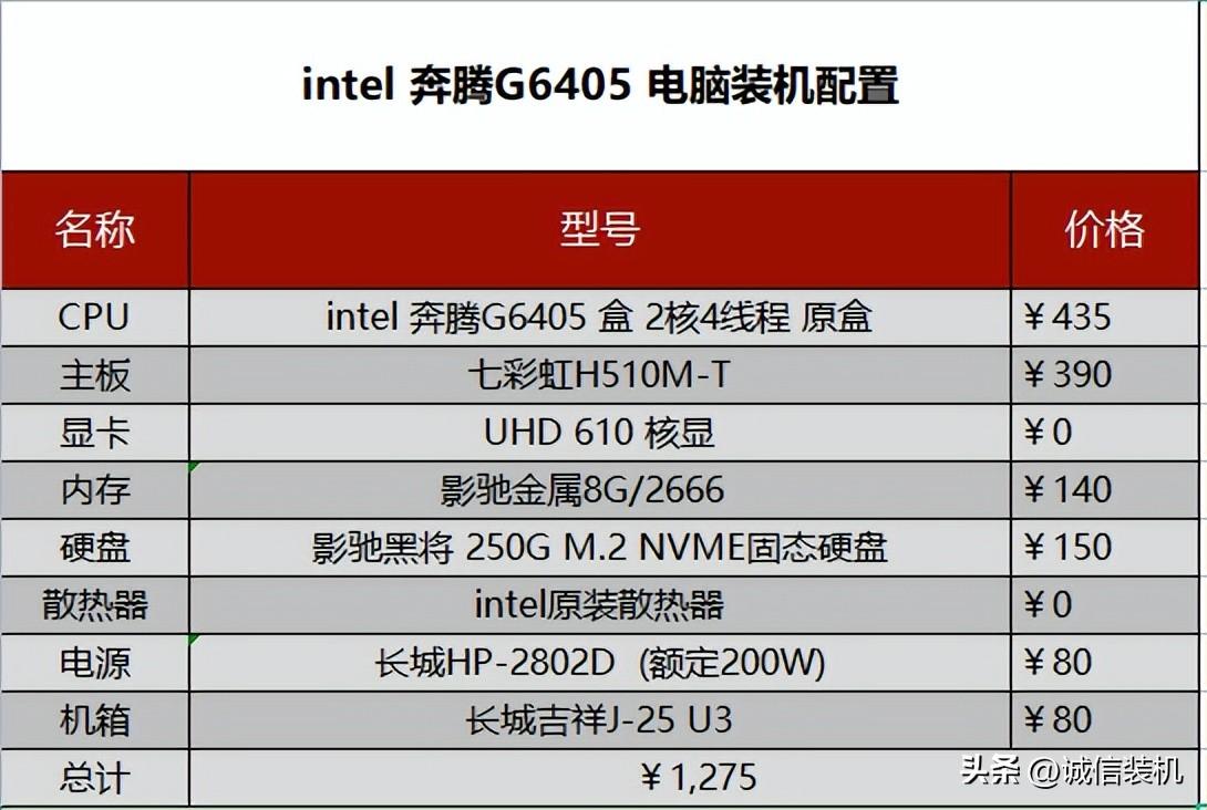 全新升级的奔腾系列处理器,配有超线程技术,2核心4线程,与前代酷睿i3处理器性能相仿,价格依然保持四五百元的档位,性价比十足,入门办公家用平台的极佳选择。内置的UHD610显卡完全满足家用办公需求
