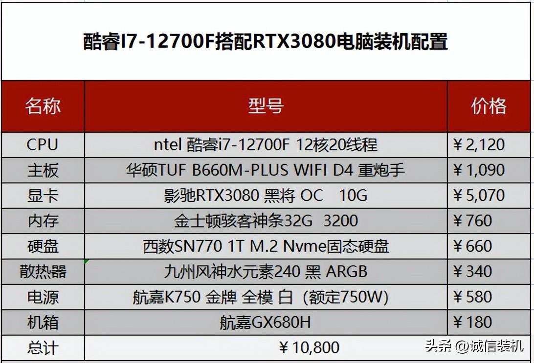 注:以下配置也不是最佳配置小编只是做一个抛砖引玉的作用,大家有倾向的品牌或者型号可以自由切换
