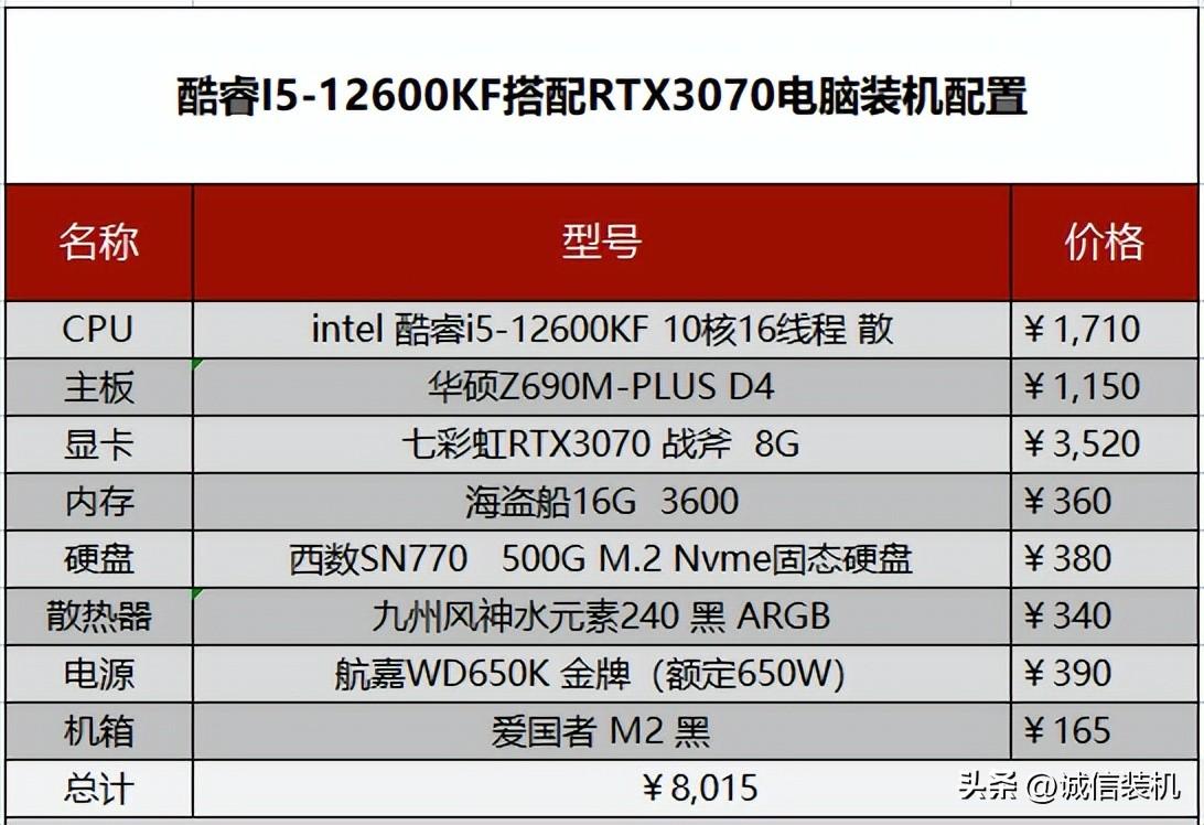 I5-12600KF搭配可超频的Z690主板,再加上RTX3070显卡,这样的配置组合,在时下可以说是绝对主流的配置,2K分辨率下游戏爽完目标也可以轻松达成,同时在生产力方面也有不俗的表现;