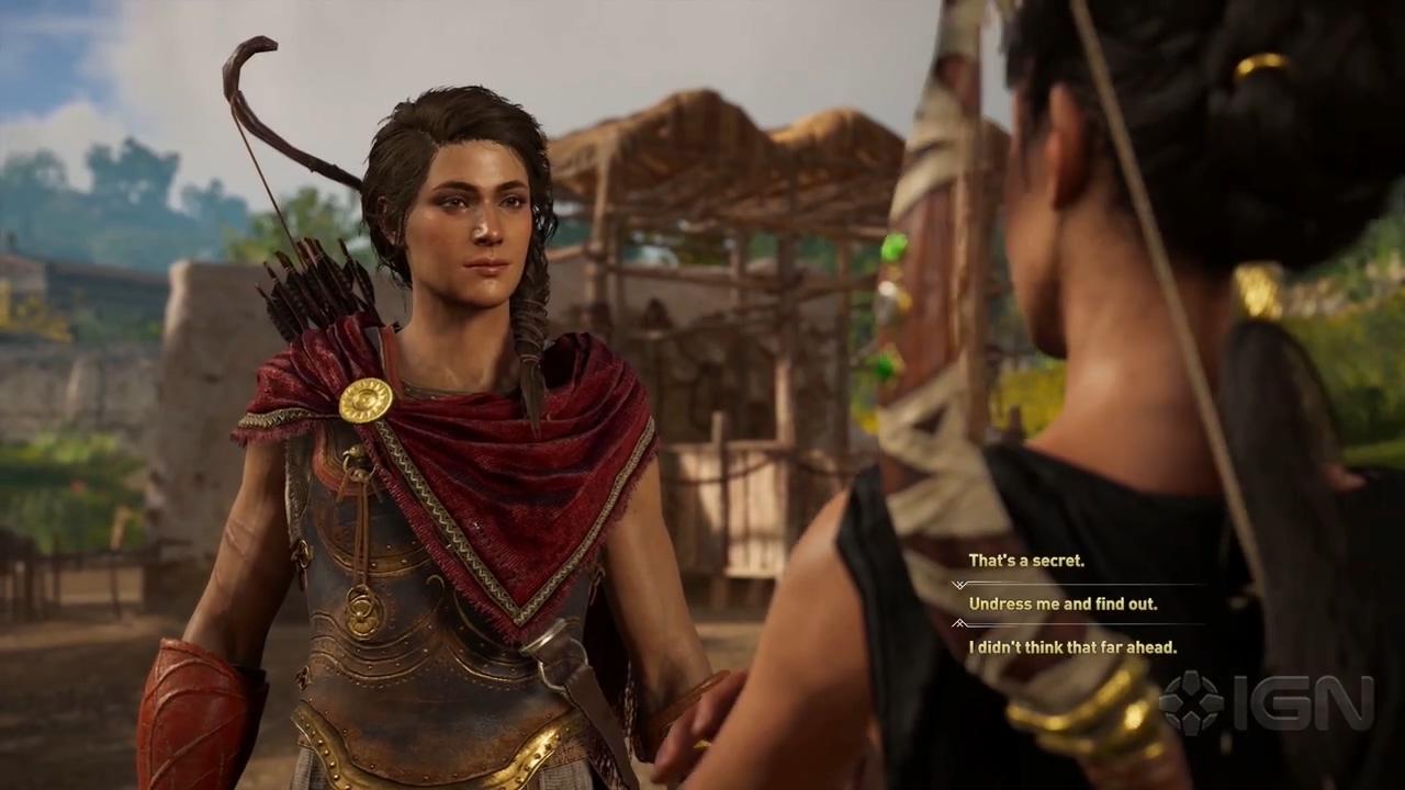 《刺客信条:奥德赛》游戏中这次加入了恋爱任务,今日IGN就为我们展示了一段恋爱支线任务。恋爱任务不分男主和女主都会有,而在下面的演示中就是女主和一个女NPC的恋爱故事。