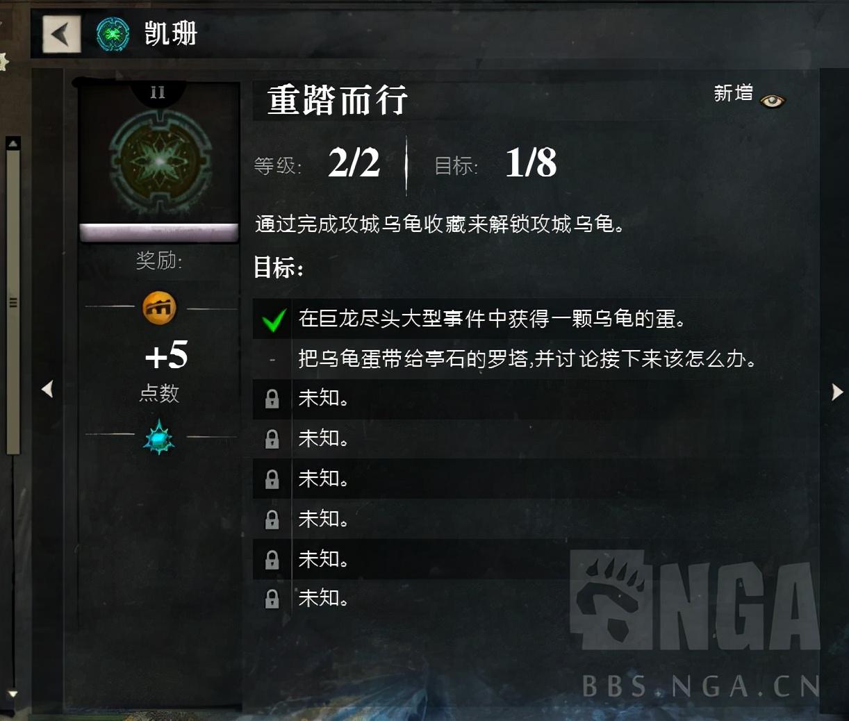 第二步:在地图中参与地图突破任务并完成击杀。完成后奖励一个乌龟蛋,开启乌龟收藏。(打了3次才过,太激动忘了截图。可以查看成就:巨龙绝境—凯珊—重踏而行。)