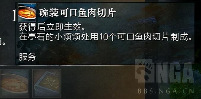 第五步:继续烧钱,来点荤的。目前钓鱼的人少,鱼肉才是真的贵。共需要:精美鱼肉100个,美味鱼肉20个,可口鱼肉10个,奇妙鱼肉5个(通过钓鱼或拍卖行获得)。还是在小凡凡那里兑换。
