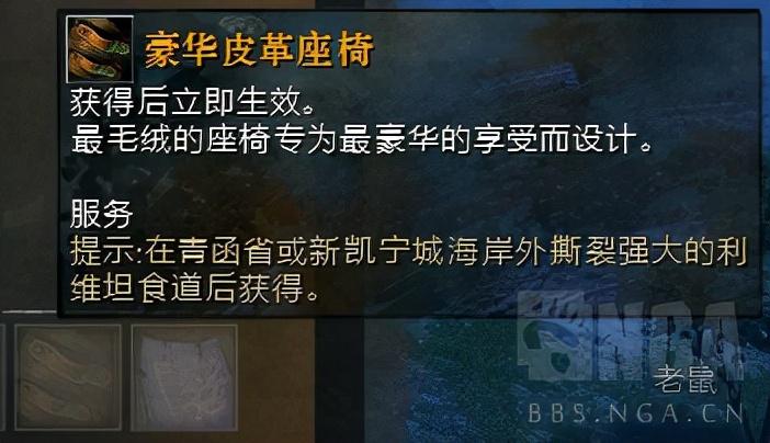 6.豪华皮革座椅:地图野外BOSS利维坦,在青函省和凯宁城2个地图都可能刷。(刷新时间频率不清楚)