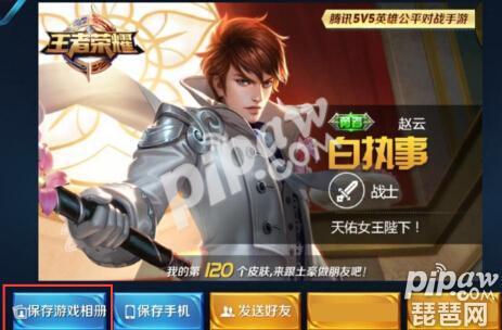 当玩家在游戏中获得英雄、皮肤、成就,或完成超神、三杀等战绩时,将当前图片内容通过分享(炫耀一下)中的“保存游戏相册”按钮将要分享的图片保存到游戏相册。游戏相册中当前最多能保存三张照片,当超过上限时,系统会提示召唤师是否使用新图片替换已有图片。