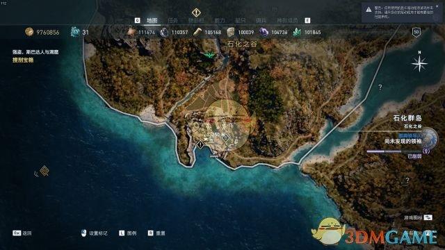 右上角勒斯珀斯岛,接浪漫石头花园这个任务,在岛的这个位置左右