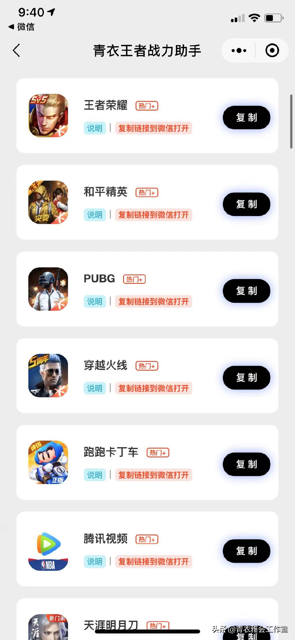 小程序:青衣王者战力助手