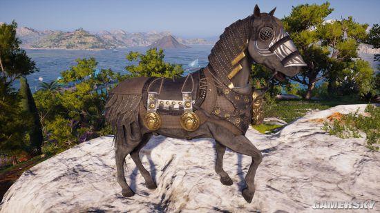 初次遇到马的时候你可以根据喜好选择马的颜色:白色、棕色或黑色。之后可以在希腊任意区域的铁匠铺中使用德拉克马更换颜色以及购买皮肤,但马的名字“弗伯斯(Phobos)”是无法更改的。需要注意的是,每次进入城镇与铁匠交谈时,可购买的皮肤都是随机出现的,所以如果你没有看到你想要的皮肤的话,就可以快速前往其他城镇寻找铁匠铺更换其他皮肤。部分皮肤需要通过Helix商店氪金、育碧点数或奥利哈钢购买获得(Helix点数只能通过解锁成就或氪金获得)。