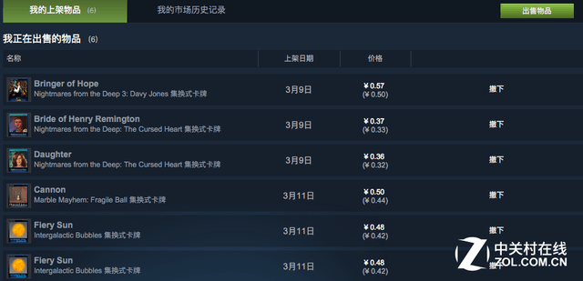 既然卡牌有这样的作用和需求,那么就一定会形成市场,所以如果你对这些卡牌不感兴趣,那就完全可以把它们都卖掉。在市场中出售这些卡牌可以赚取货币,自动存入Steam钱包中,这些货币与当地货币是1:1的兑换率,不能提现,但是可以用来购买游戏或是市场中的别的东西。