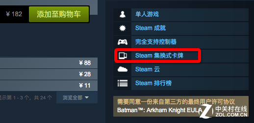 首先什么是卡牌?卡牌是在Steam平台运行的游戏的一种特性,即当我们在运行游戏时,Steam平台会产生一些该游戏对应的卡牌自动进入“库存”中。但不是所有游戏都会掉落,我们在游戏商店页面的下图位置,如果看到“集换式卡牌”几个字才说明这个游戏会掉卡。