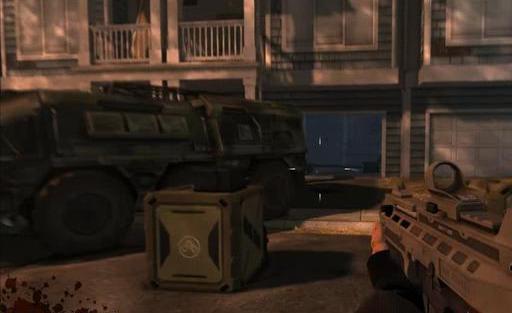 与敌人打完遭遇战,进入楼房,诡异的卷帘门会自动关上,那里有武器补给箱,