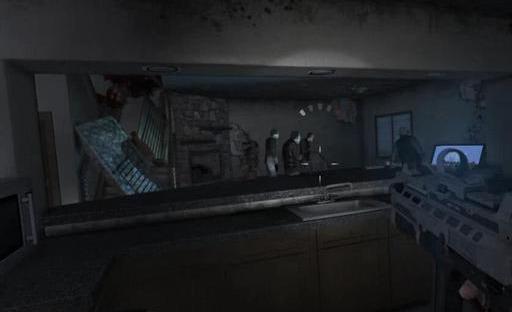 杀掉这个丧尸,后边的门打开,楼房墙体已经被炸开了一个缺口,敌人正在院子里埋伏你,