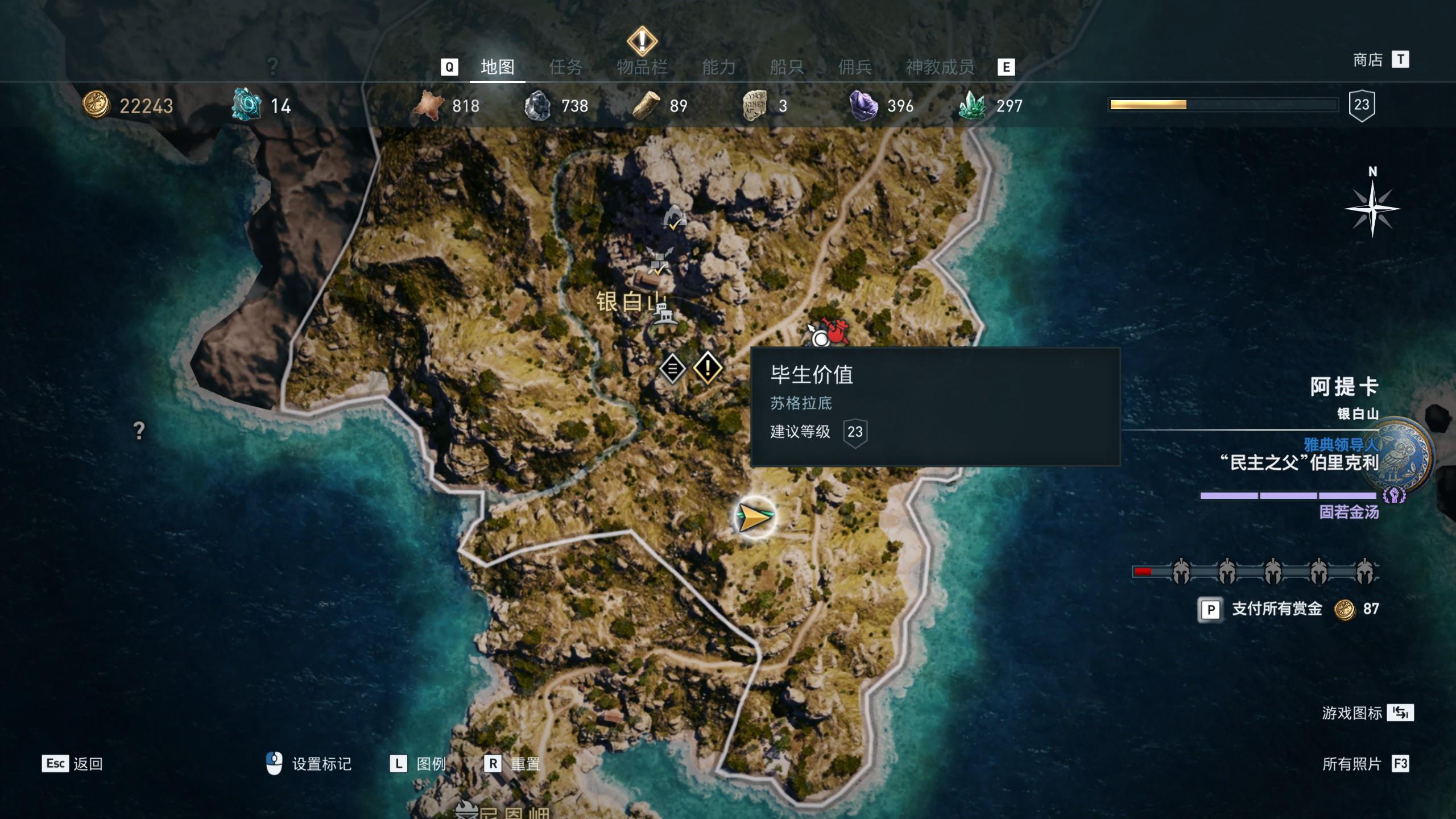 1.在雅典苏格拉底的只限任务一定要做,直到在白银山出现这个“毕生价值”的支线任务为止